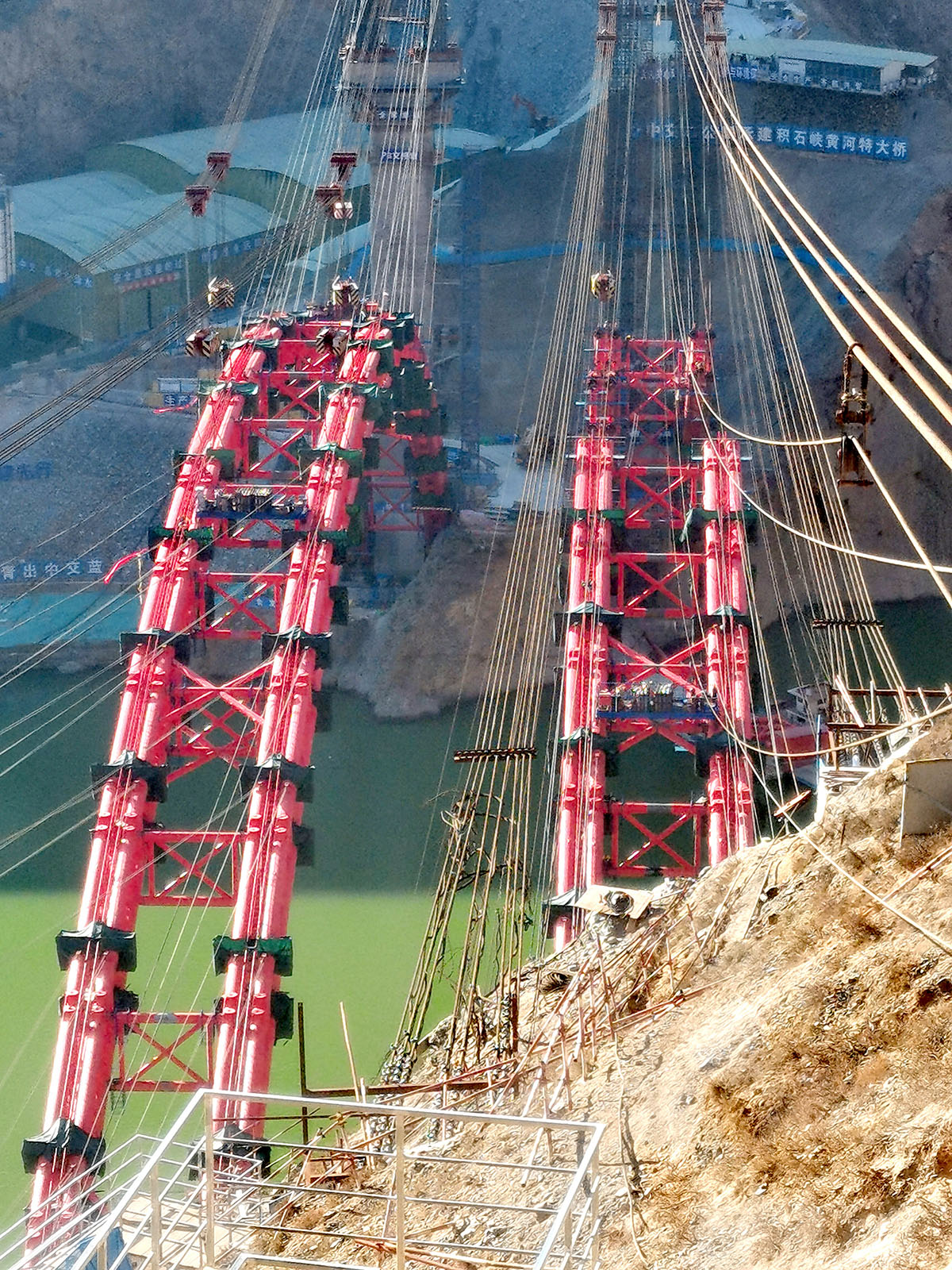 该桥为主跨265米的上承式钢管混凝土拱桥,全长492.72米的大桥,采用4×60t缆索起重机进行安装,2025年1月15日合龙。